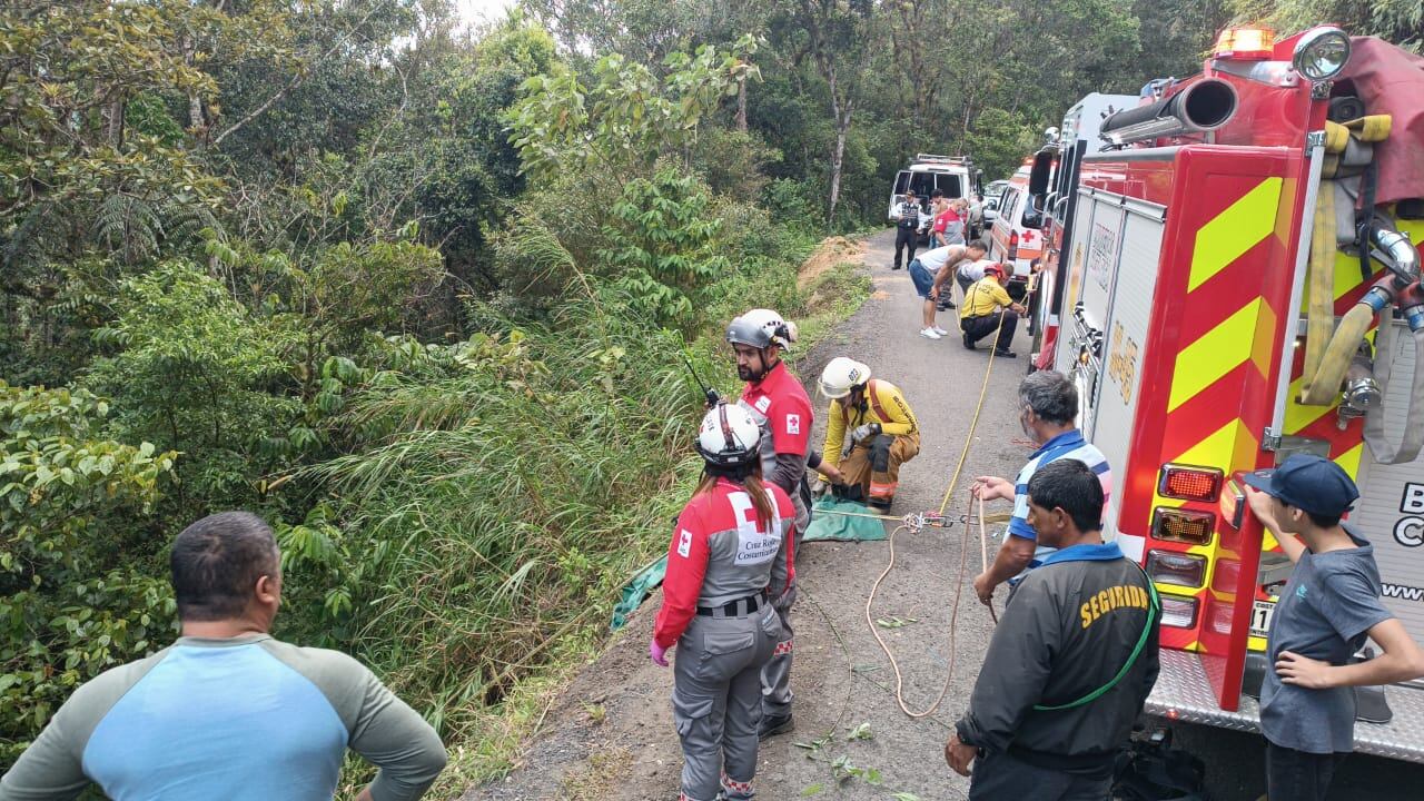 El incidente ocurrió a la 1:30 de la tarde en Navarro de Agua Caliente de Cartago, cuando, por motivos que se desconocen, el conductor de un vehículo terminó cayendo a un guindo de 50 metros de altura.
