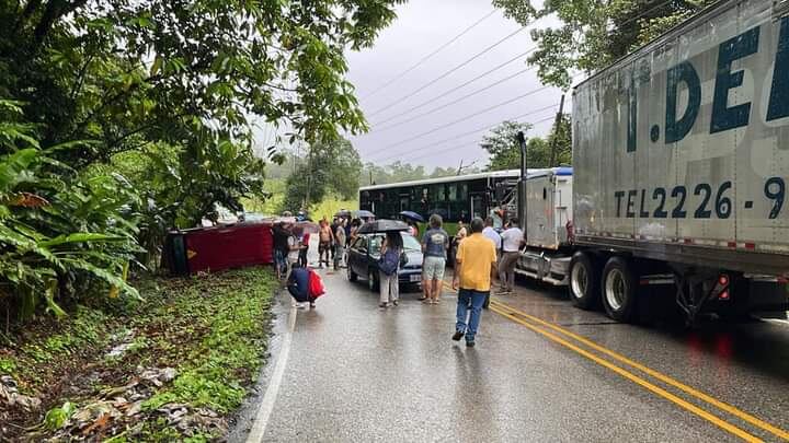El accidente fue entre un bus, un taxi tipo microbús, un tráiler y un carro particular. De momento se desconocen las causas que provocaron el accidente, sin embargo no descartan que el mal tiempo haya jugado una mala pasada. Este ocurrió a las 7:22 a.m. de este lunes.