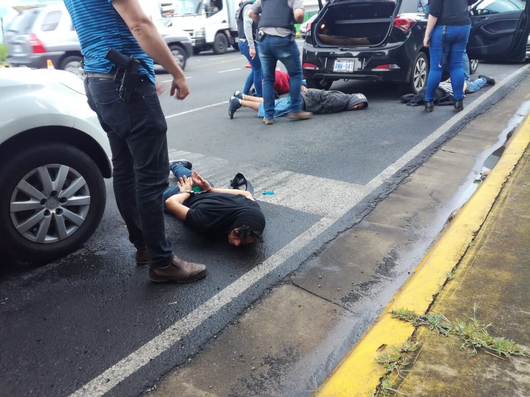 La captura de los delincuentes ocurrió el miércoles en la tarde en San Francisco de Heredia y los identificaron con los apellidos Gutiérrez Molina, señalado como el líder de una banda de robacarros, y sus compinches, de apellidos Soto Maroto, Martínez Sánchez y Rodríguez Ramírez. Se les detuvo 42 horas después de que robaran un carro frente a la cafetería Kaffa, en Coronado centro.