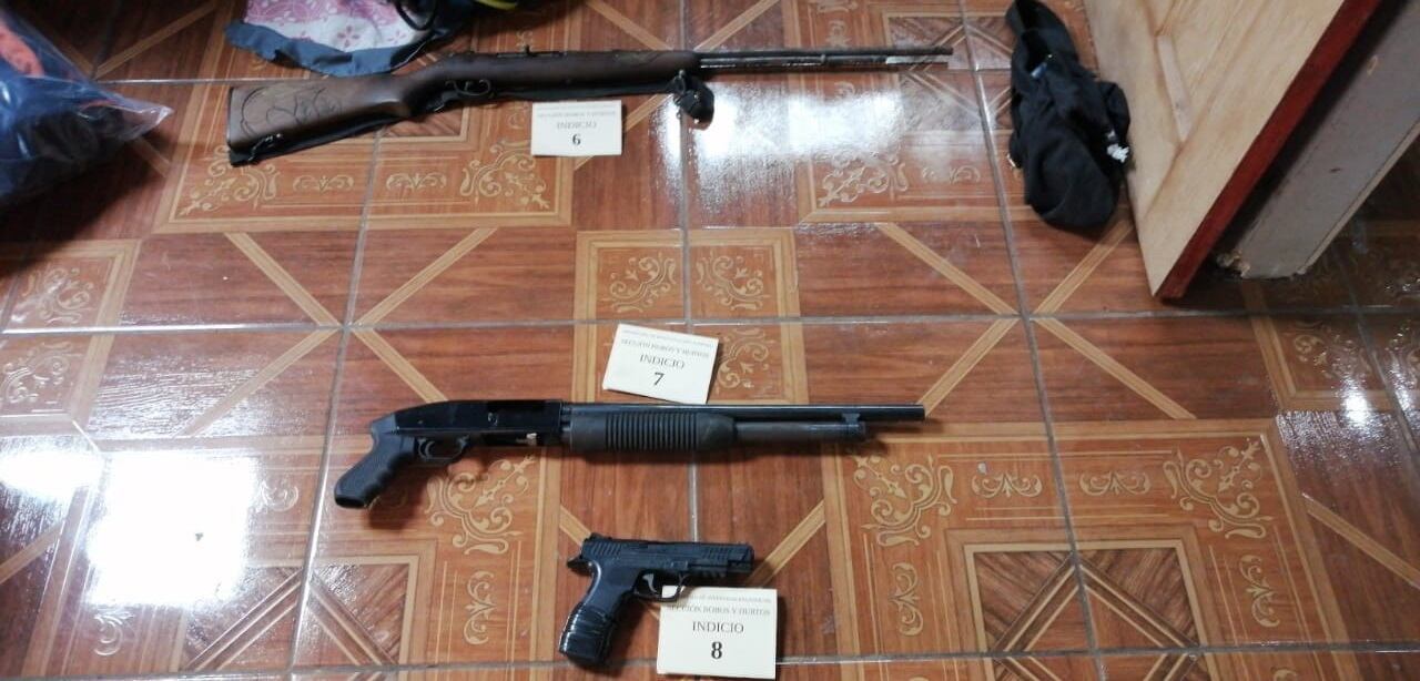 Luego de las detenciones, las autoridades decomisaron tres cajetas de crack, un rifle calibre 22, una escopeta calibre 12, un arma tipo pistola no letal, la motocicleta utilizada para cometer los asaltos, una caja de piercing, los cascos y dos celulares que tenían denuncias por robo.