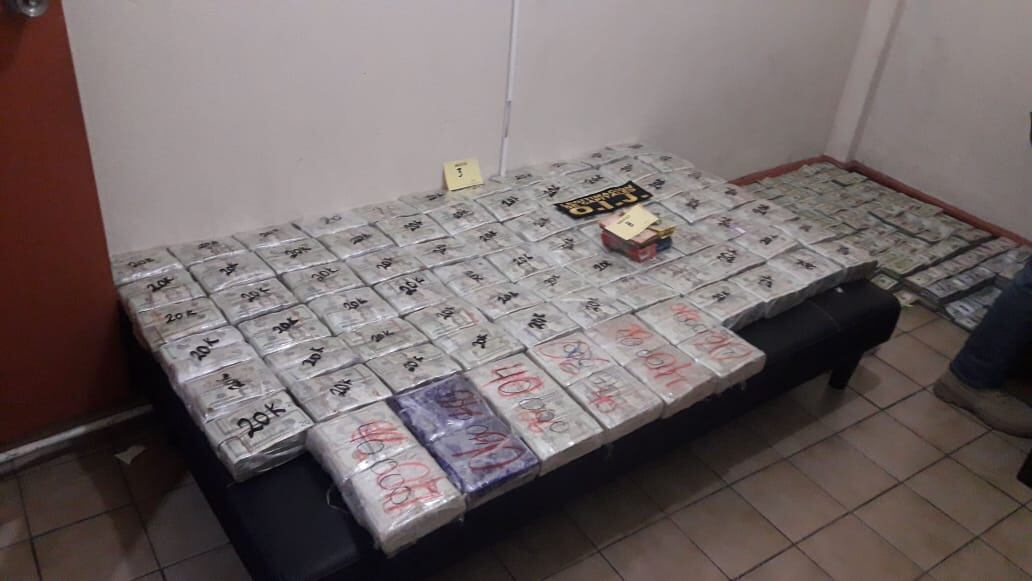 “Estas personas fueron detenidas y van a ser trasladadas a los Tribunales de Justicia por el delito de Legitimación de Capitales, relacionado con la incautación de aproximadamente tres millones de dólares en efectivo en billetes de distintas denominaciones”, explicó Wálter Espinoza, director del OIJ.