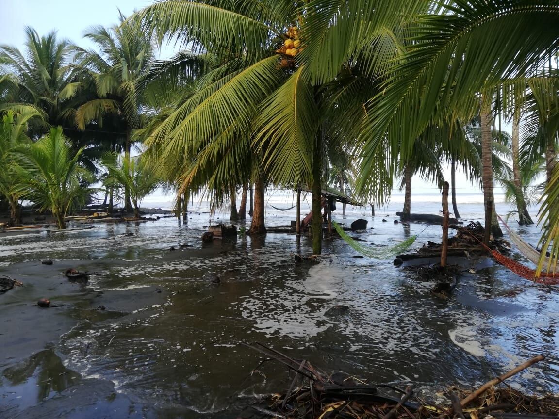 Mientras que en Barra del Colorado, Tortuguero, Cahuita, Manzanillo y Puerto Viejo se ha reportado afectación por el oleaje, pero menor, el agua llega a algunas viviendas, pero baja rápido.