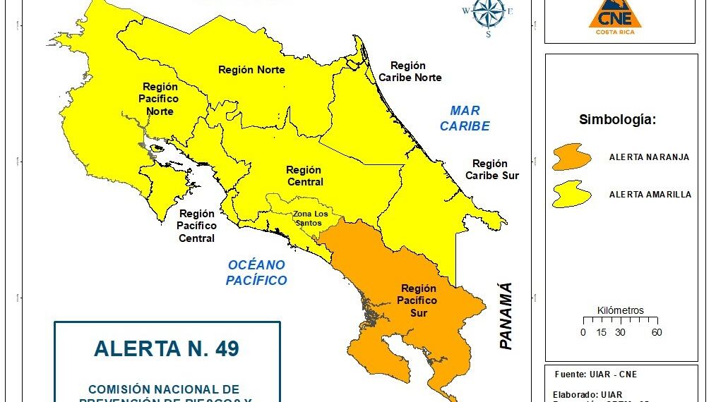 Las autoridades prevén aguaceros en el Caribe, zona norte y montañas del norte del país. Además de un incremento de las lluvias en el Pacífico central y sur, estas serán las regiones con mayor cantidad de lluvias.