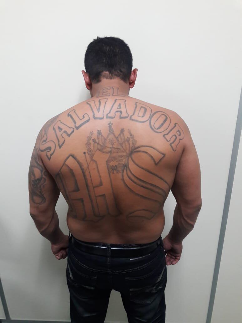 Cuando el bicho se quitó la camisa, los polis terminaron de confirmar que era un pandillero, pues en la espalda llevaba los típicos tatuajes que usan estos maleantes para rajar sobre su pertenencias a la banda.