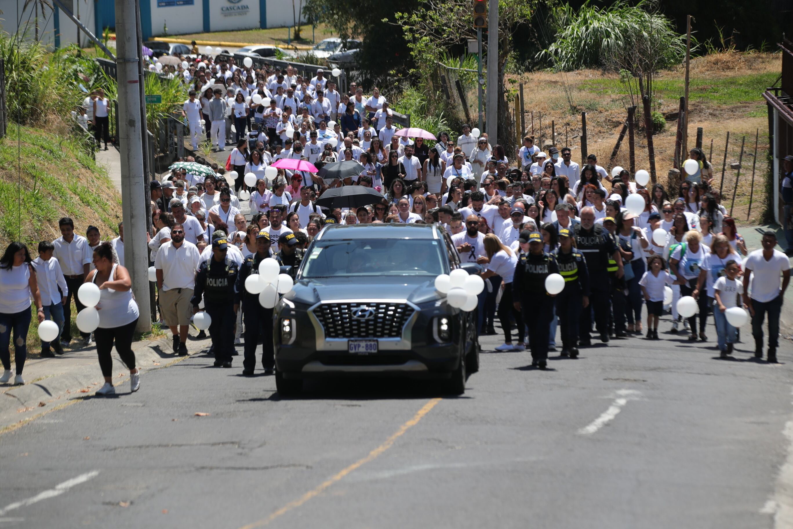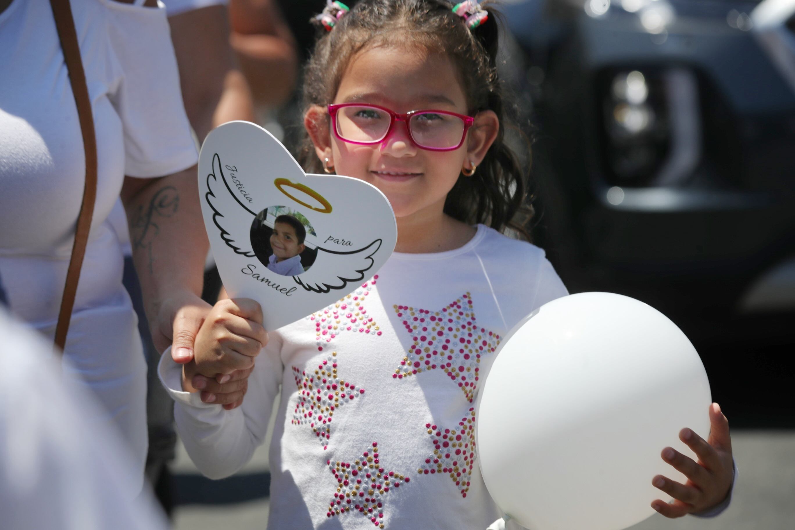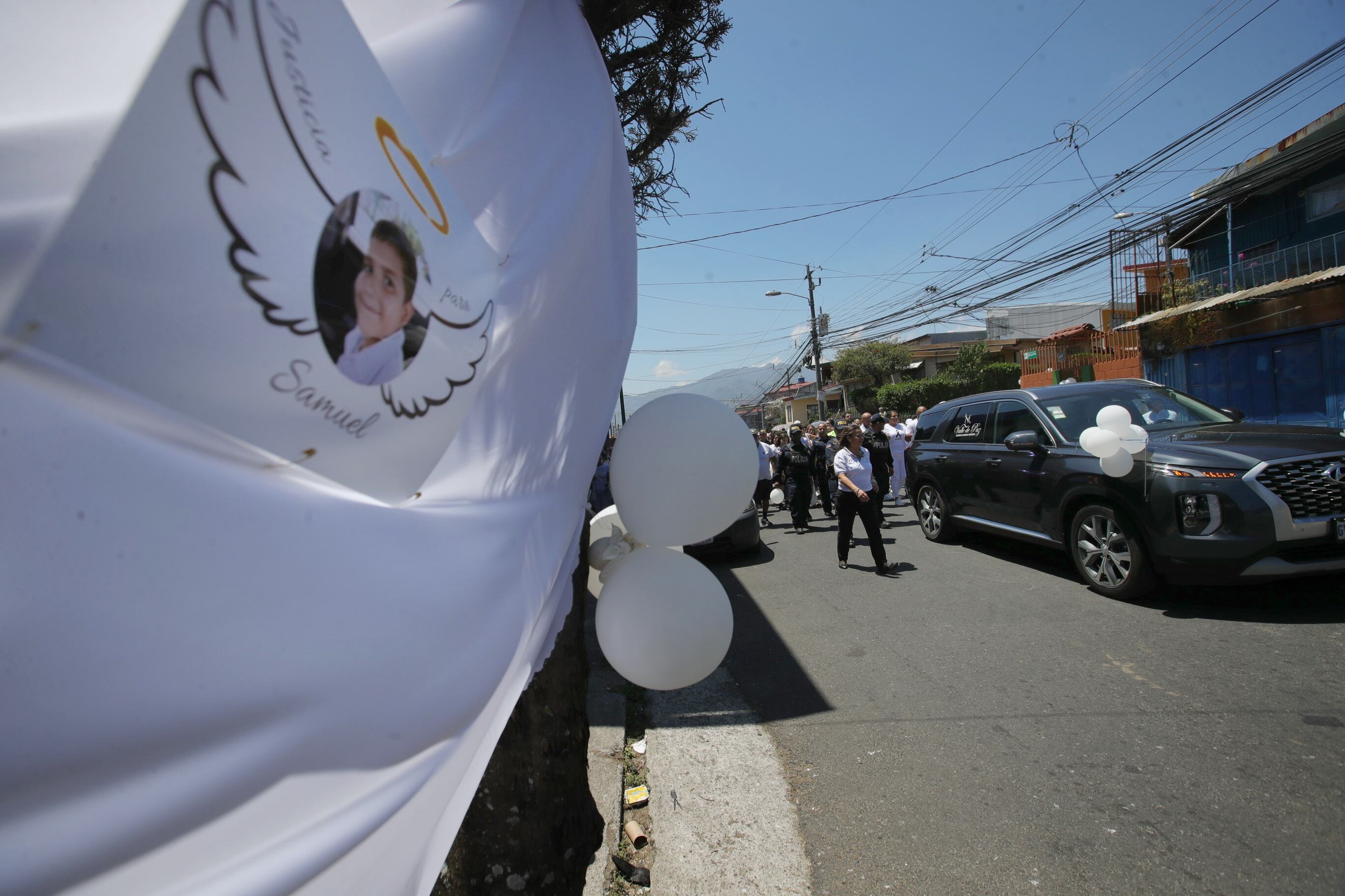 Con camisetas blancas, carteles con fotos de Samuel y globos, fue como decenas de personas, principalmente vecinos del barrio La Gloria de Zapote, se unieron a la familia del chiquito para darle el último adiós.