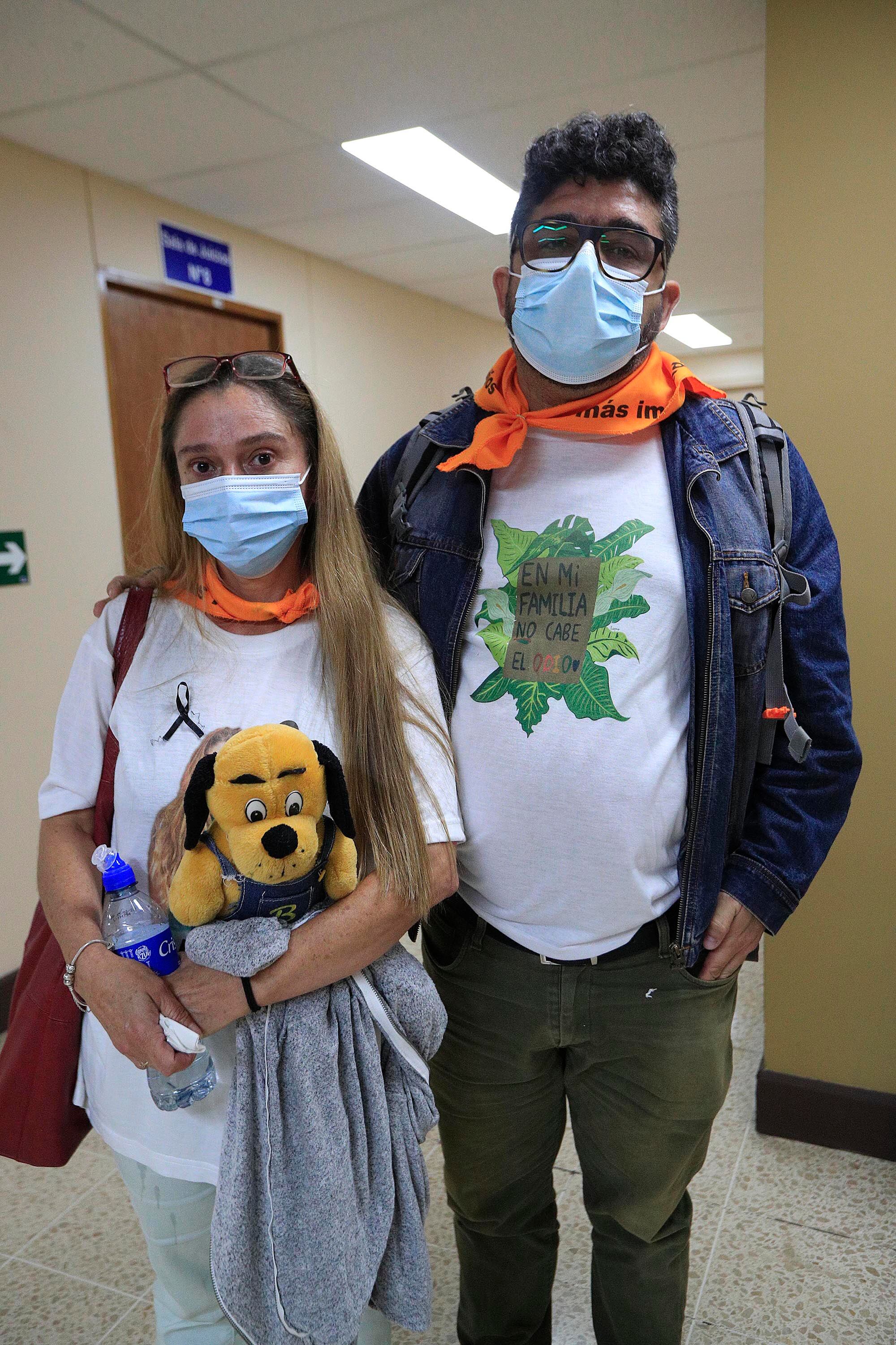 Los papás de Eva Morera, Óscar Morera y Alina Ulloa, llegaron a declarar al juicio por el femicidio de la joven con Puppy, el peluche favorito de su hija.