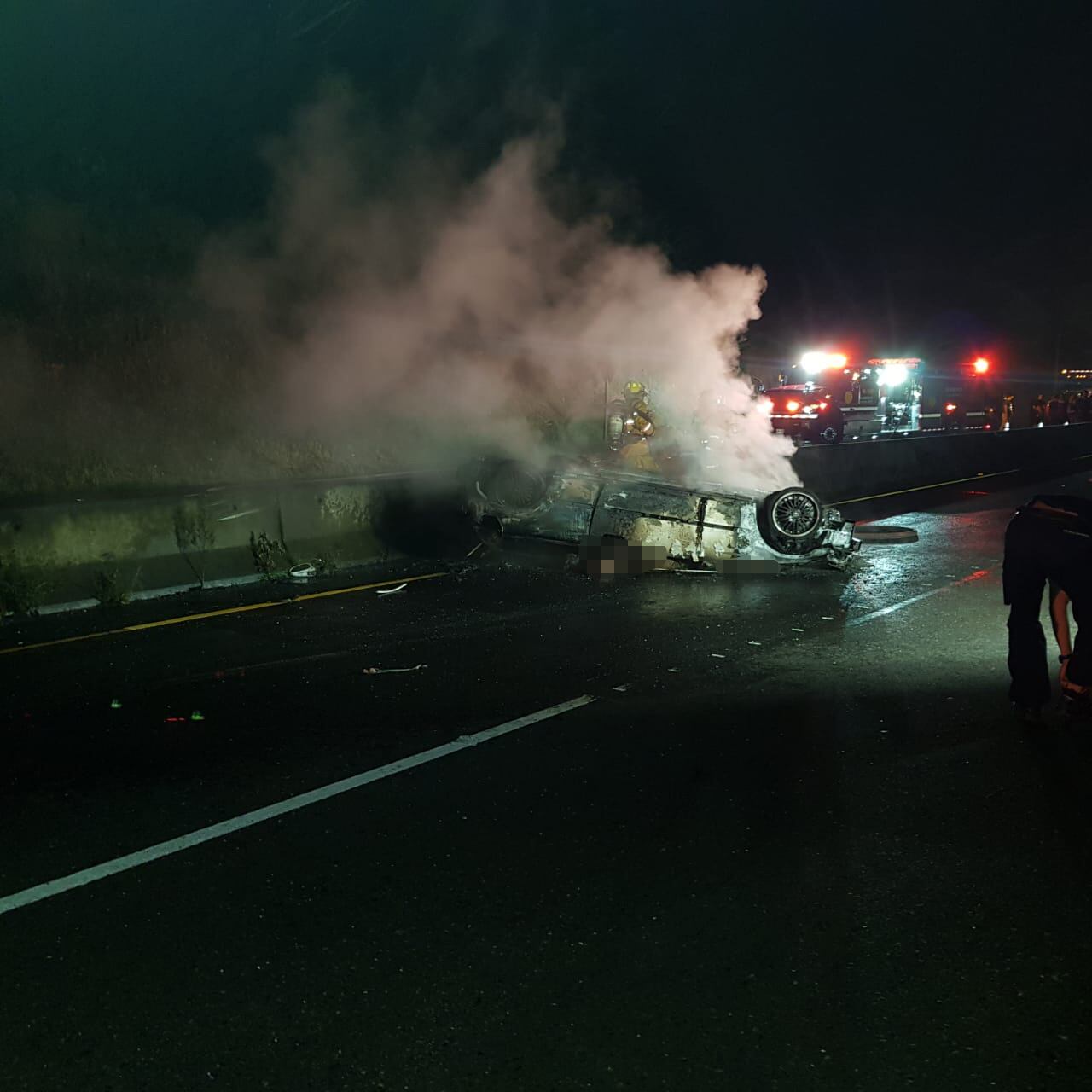 El carro pegó, se volcó y así se fue resbalado por casi 200 metros. Trascendió que varios conductores trataron de auxiliar a la pareja pues dijeron que la mujer pedía ayuda, pero nadie andaba extintor y no pudieron hacer nada.