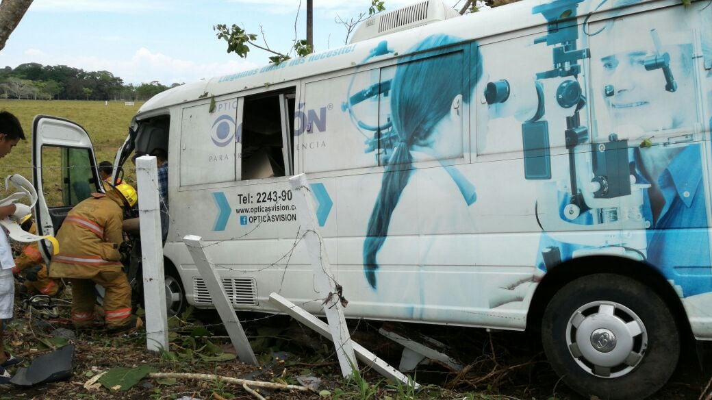 Los dos ocupantes de la buseta de Ópticas Visión están en condición grave en el Hospital de Golfito, ellos fueron liberados del vehículo por los rescatistas.