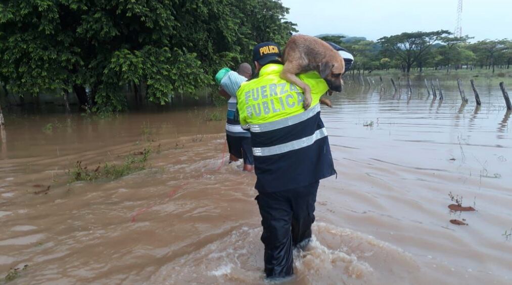 “Los policías estamos llamados a salvar vidas, sean de humanos o de animales, todas valen, ese día recuerdo que el perro estaba encerrado por el agua y decidí llevarlo a un lugar seguro”, narró.