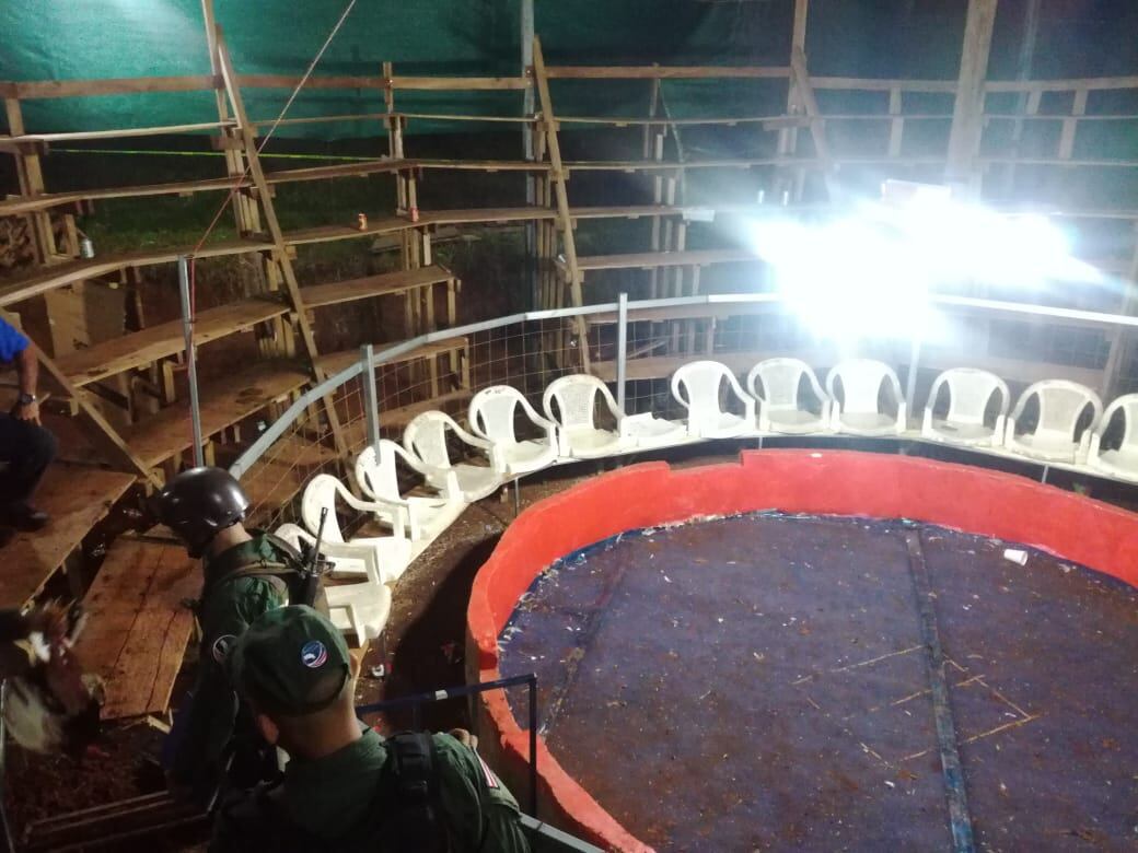 Cuando los agentes entraron al galerón se encontraron con una instalación en forma circular y a su alrededor tenía sillas plásticas y hasta una gradería que fue construida con tablas de madera para que el “público” estuviera más cómodo.
