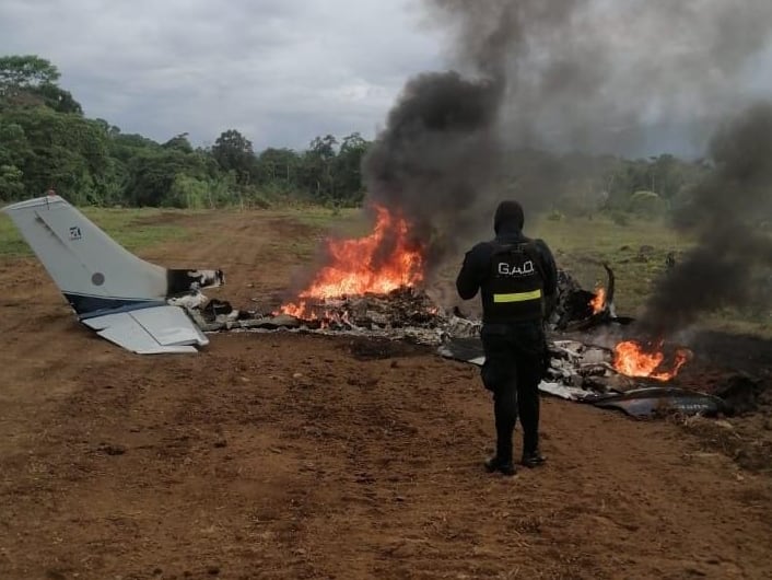Una avioneta en llamas fue encontrada por oficiales de la Fuerza Pública la tarde de este viernes 3 de marzo en Sarapiquí.