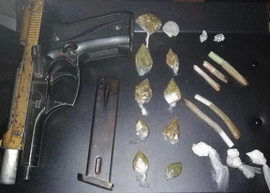 También decomisaron un arma no letal, la cual tiene la misma apariencia y funcionamiento de un arma de fuego, pero solamente emite sonido o gas.