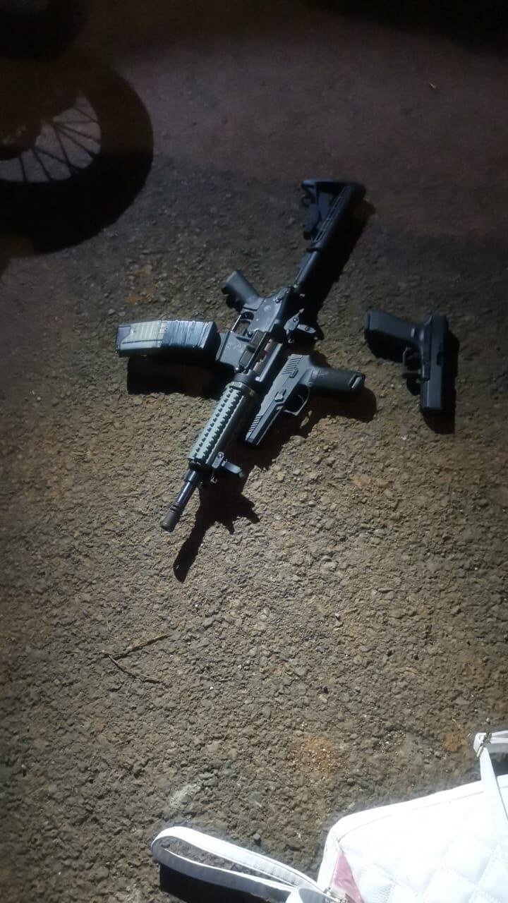 Según el detalle de la Policía, les decomisaron ocho fusiles AK47; cinco fusiles AR15; diez armas cortas; cargadores para distintas armas; dos chalecos antibalas; dos radios de comunicación y un bolso con joyas.
