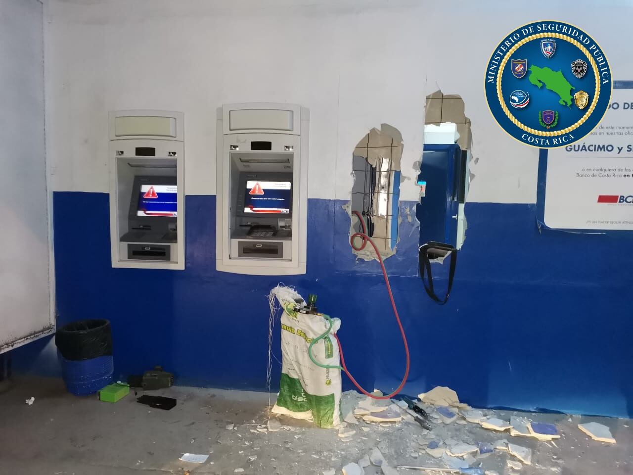 En un hecho que parece sacado de una película de acción, oficiales de la Fuerza Pública frustraron el robo de un cajero automático del Banco de Costa Rica en Guácimo, Limón, al enfrentarse a plomazos con los maleantes.