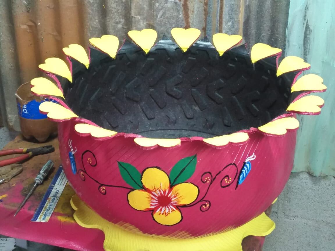 “Hace seis años busqué la manera de ganar platica extra para la casa y se me ocurrió la idea de trabajar con llantas. Actualmente eso produce (las llantas) mucha contaminación y entonces pensé que además de ayudarme, al reutilizarlas podía también ayudar a la naturaleza", explica.