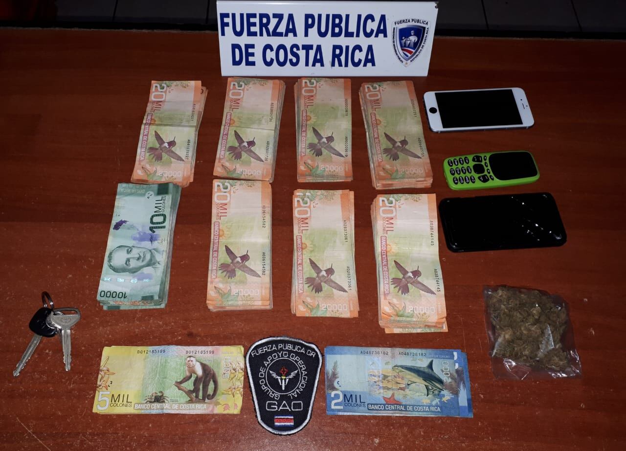 Los sospechosos fueron puestos a las órdenes de la Fiscalía de Siquirres, al igual que el dinero, la droga y el carro.