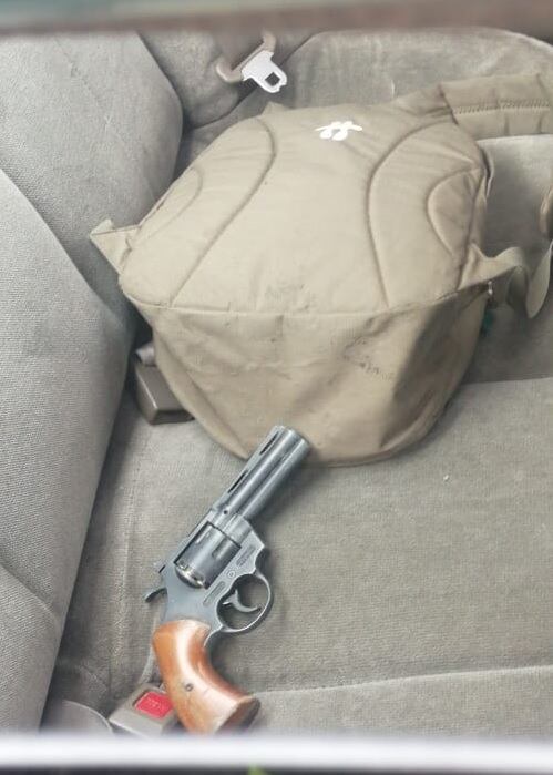 Dentro del carro de los presuntos delincuentes, las autoridades encontraron un revólver y bolsas con parte de la mercadería robada, ya que otra quedó tirada en la calle.