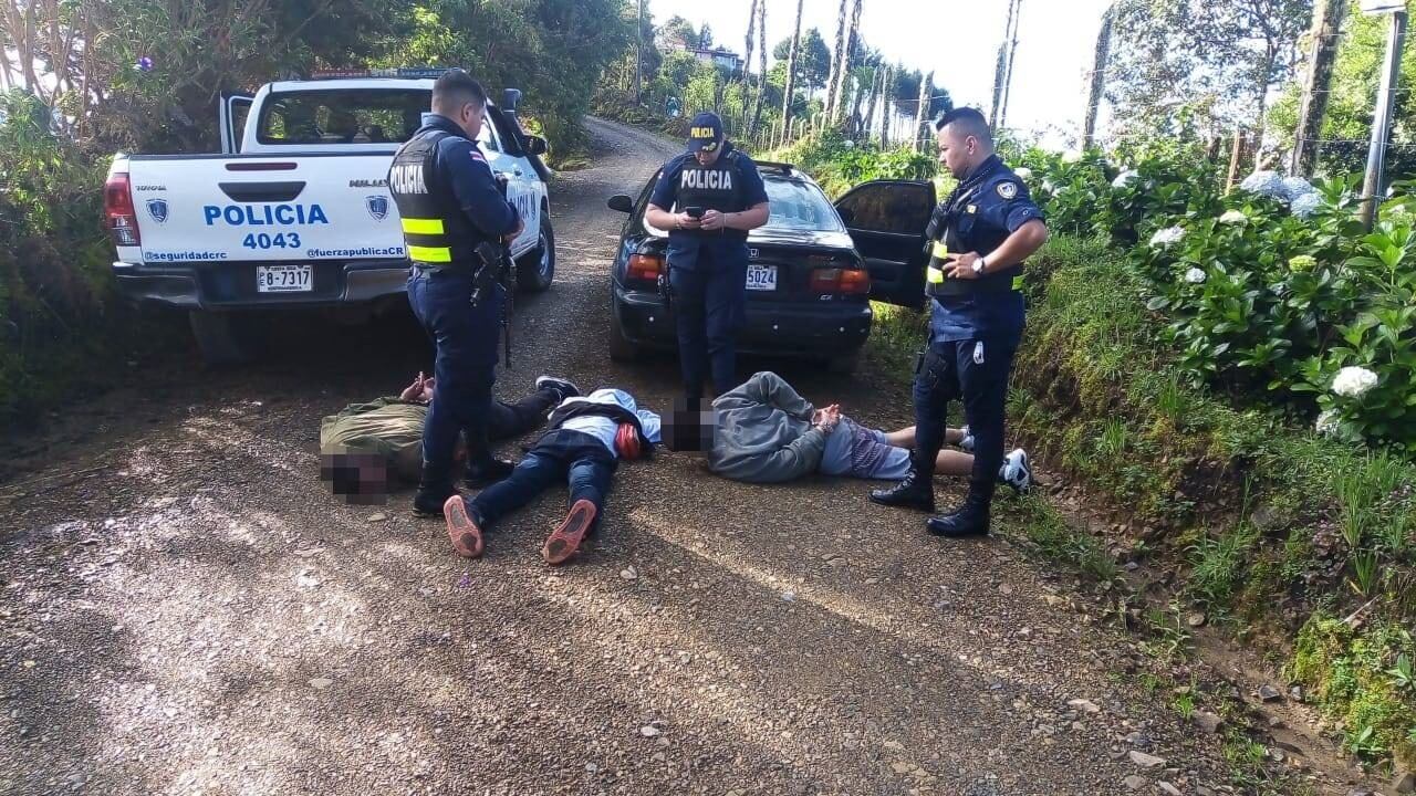 “Al percatarse de la presencia policial, los presuntos delincuentes bajaron a la víctima y continuaron su marcha, por lo que cerca de un kilómetro y medio después las autoridades interceptaron el auto”, dijo el Ministerio de Seguridad Pública.