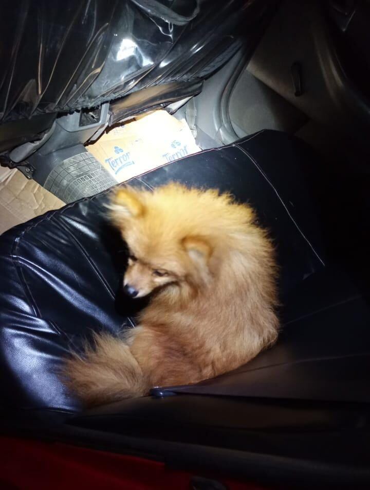 Un perrito de raza pomeranian fue salvado por la policía cuando lo llevaban en un taxi después de que su dueño fuera víctima de una estafa.