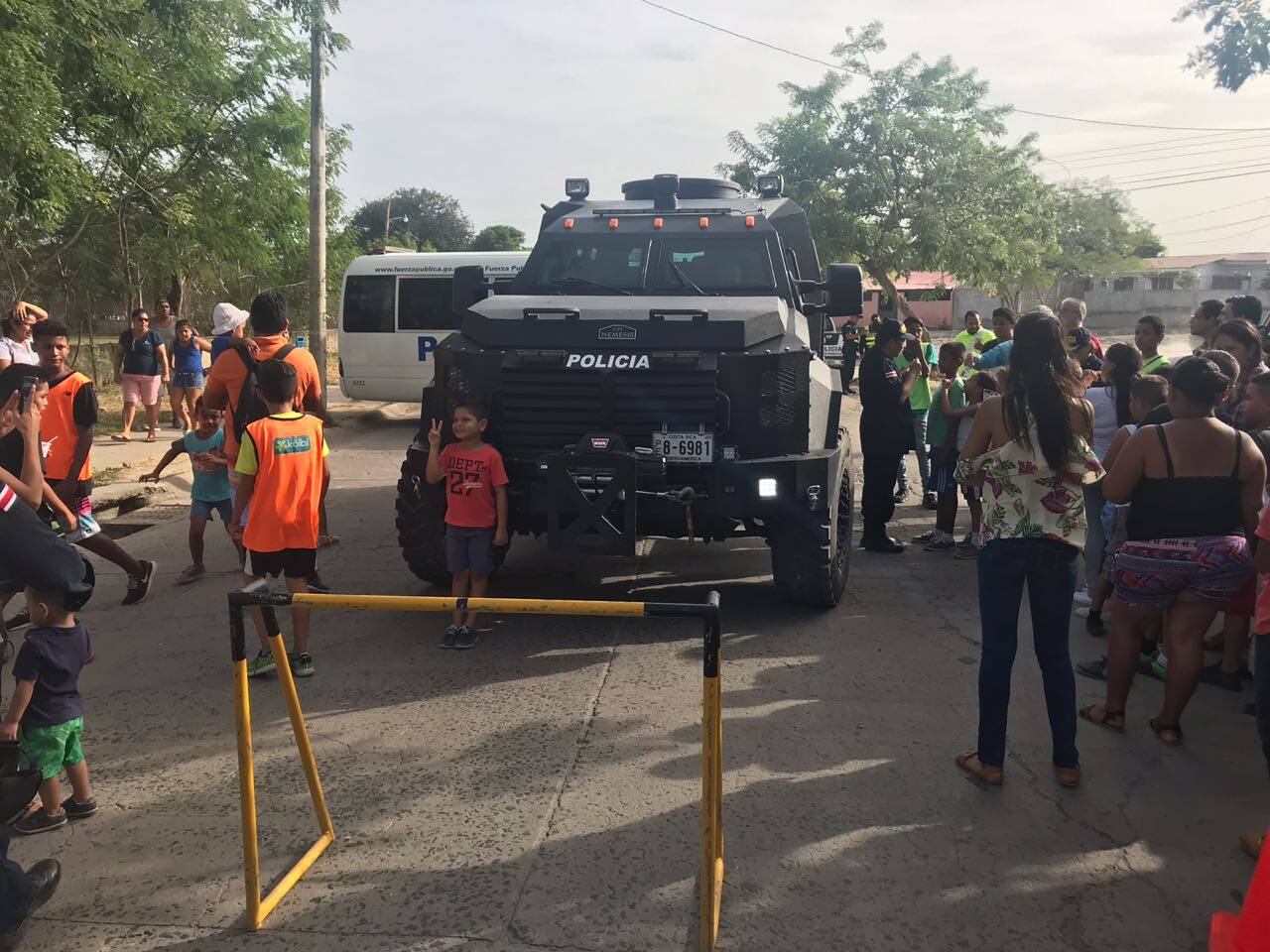 Esta vez “La Mejenga” se dio en el barrio San Roque y luego de dos horas de partido, los oficiales llevaron el gran camión blindado del Ministerio de Seguridad, el cual fue bautizado como El Chirripó.