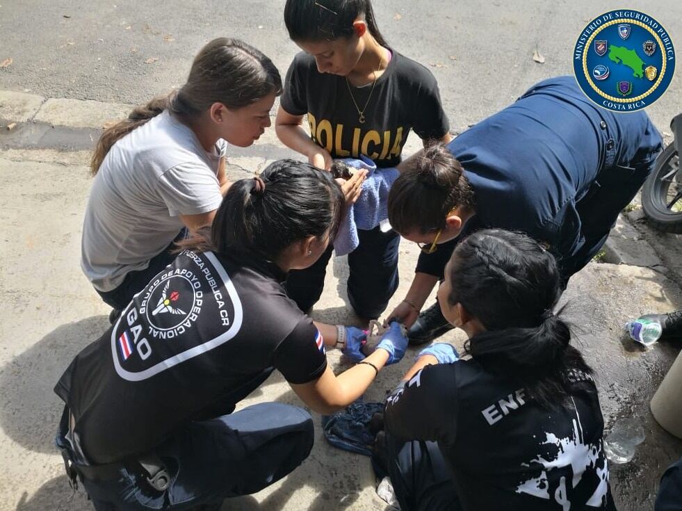 Los uniformados andaban patrullando las calles del centro de Barranca, en Puntarenas, cuando vieron a los peluditos y de inmediato los socorrieron ya que corrían el riesgo de morir.