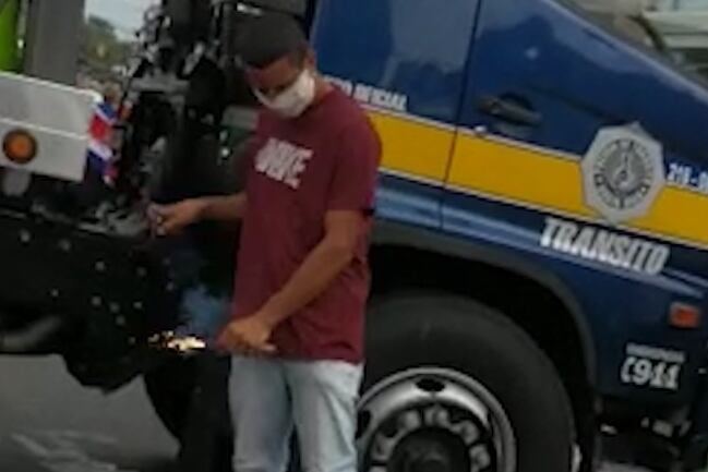 Esto debido a que la Fiscalía Adjunta del I Circuito de San José abrió una investigación en su contra por el delito de presunto incendio o explosivo, pues es sospechoso de reventar una potente bombeta, conocida popularmente como cuarto de dinamita, debajo de un vehículo plataforma de la Policía de Tránsito, el martes pasado en las afueras de Casa Presidencial, en Zapote, durante las manifestaciones en contra del Gobierno.