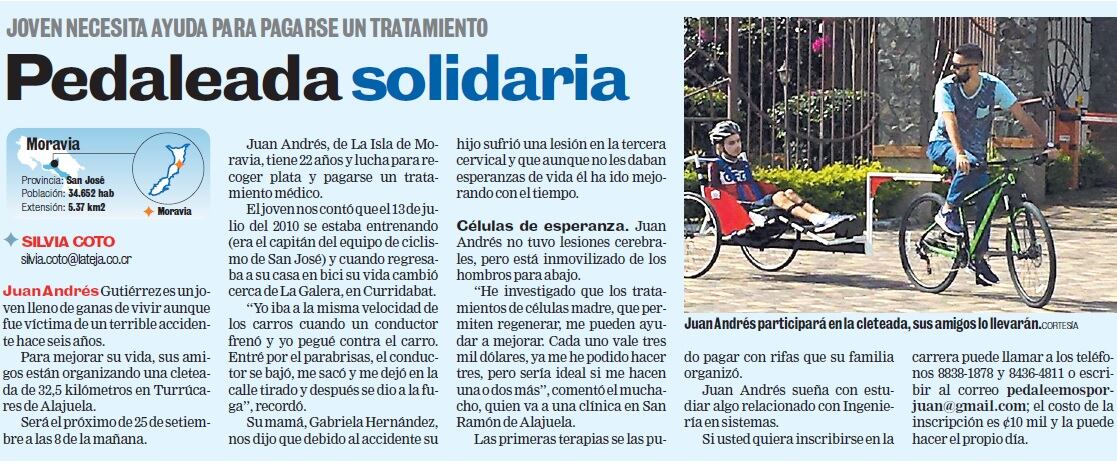 Para este joven de 24 años, vecino de La Isla de Moravia, la vida cambió el 13 de julio del 2010. Él era el capitán del equipo de ciclismo de San José, ese día estaba entrenando y regresaba en cleta hacia su casa.
