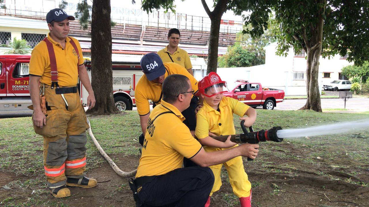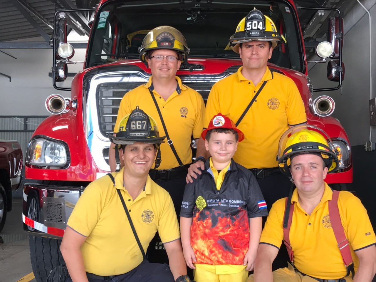El pequeño Rafael "Rafita" Espinoza pudo cumplir este sábado su sueño de ser bombero, al menos por un ratito, gracias a los Bomberos de la estación de Alajuela.