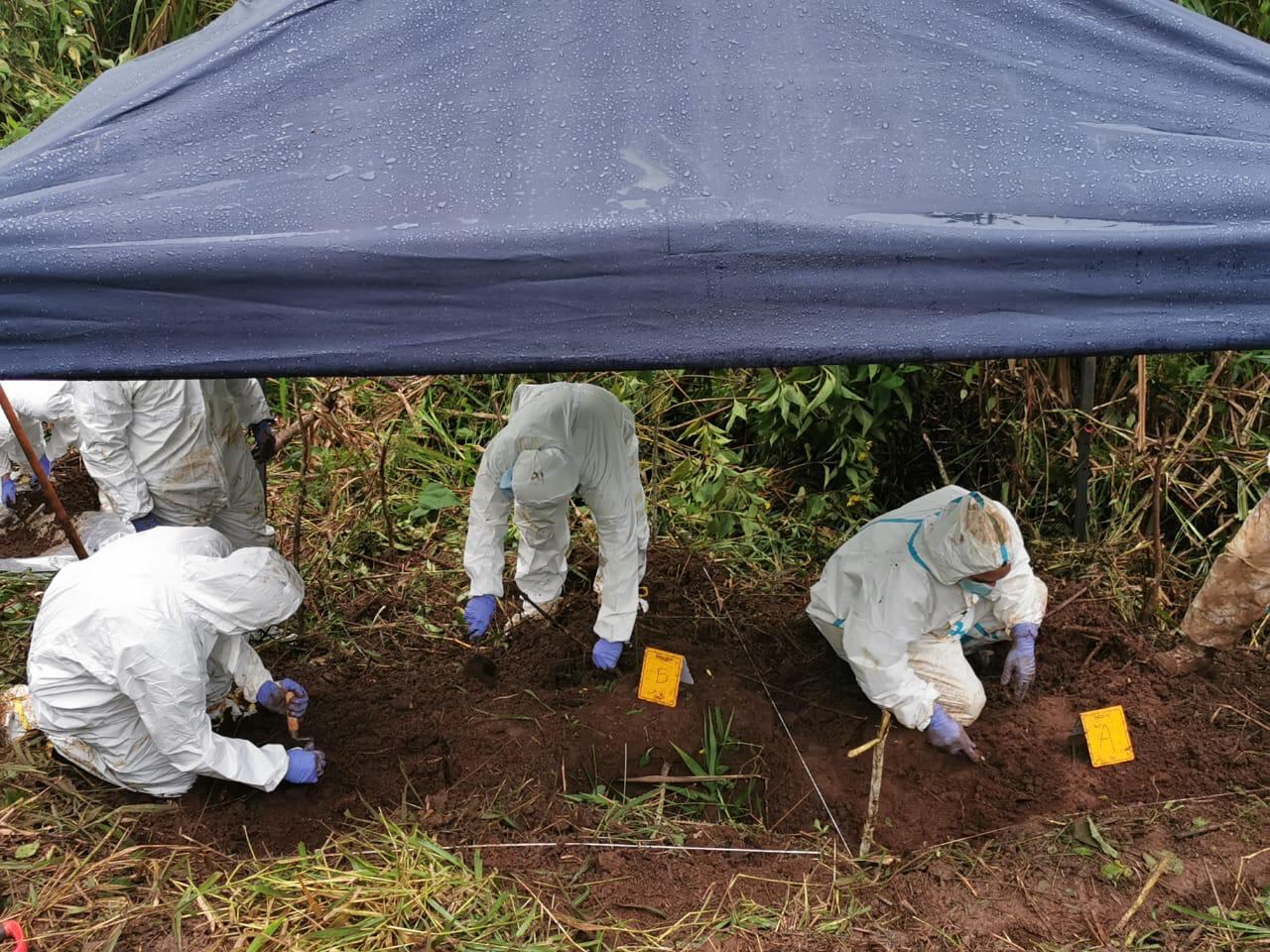 Las autoridades judiciales están rastreando una zona montañosa en Atlántida de Limón, donde podrían haber unas fosas con posibles restos humanos.