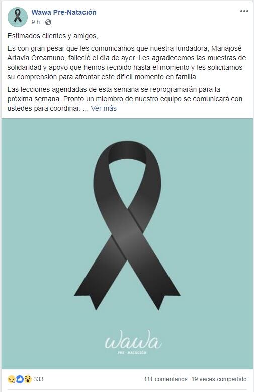 Este miércoles la página de Facebook de la academia publicó un mensaje por la muerte de Mariajosé, y al momento estaba lleno de comentarios, la mayoría de agradecimiento por lo que hizo Mariajosé por decenas de pequeñitos.