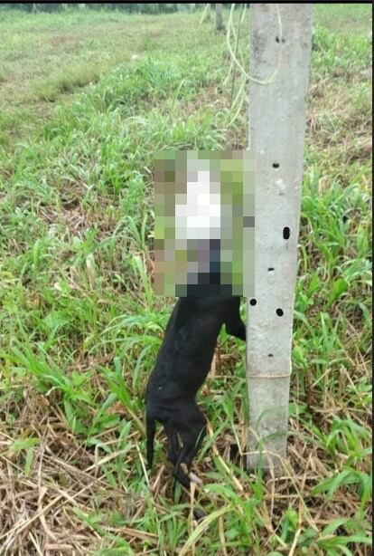 Al parecer, después de que el sospechoso guindó al cachorrito se quedó esperando hasta que muriera. Los lugareños no intervinieron porque aparentemente los amenazó. Las autoridades entregaron varias fotos como evidencia.