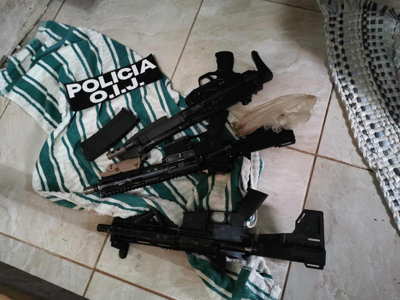 Este martes, en total decomisaron $2.745 (unos ¢1.729.350), así como ¢2.566.900 en efectivo, siete armas de fuego (tres rifles, 1 AR-15, un fusil de asalto, un revólver y una pistola), 16 celulares, dos laptops, cinco GPS y seis carros.