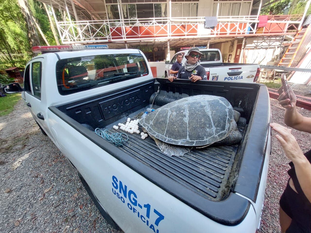 El operativo estuvo a cargo de la Fuerza Pública de Limón y el Servicio Nacional de Guardacostas, los sospechosos tenían la lancha lista con las tortugas, pero escaparon.