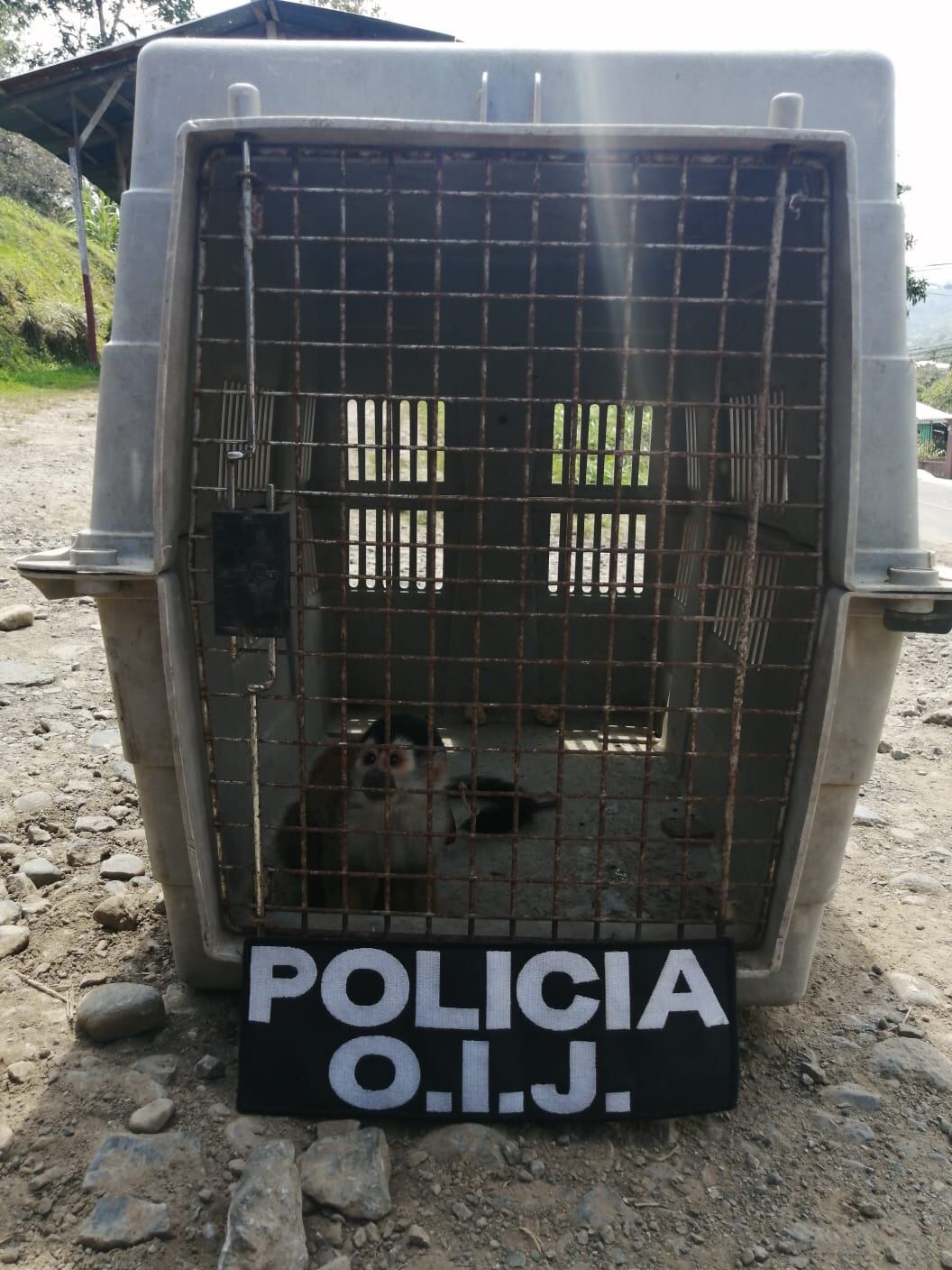 Un mono titi fue rescatado por agentes del OIJ y personeros del Sistema Nacional de Áreas de Conservación (SINAC), ya que el peludito era la mascota de una familia de Tucurrique en Cartago, algo que es prohibido.