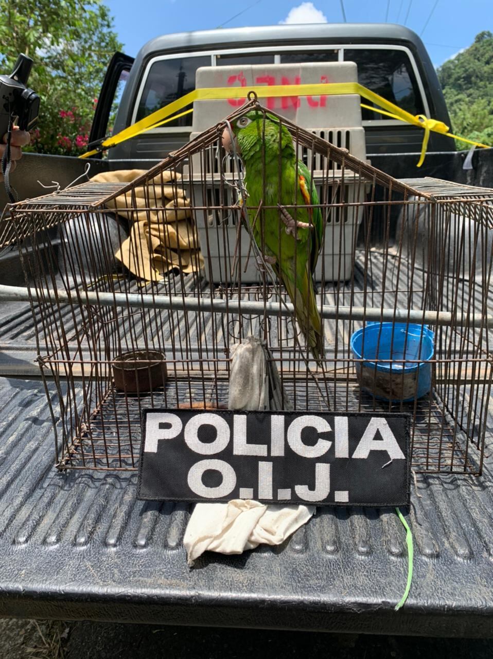 “De acuerdo con el reporte de los agentes judiciales, a raíz de informaciones confidenciales que ingresaron al SINAC, fue que coordinaron dicho trabajo operativo, el cual se desarrolló el día de ayer, entre las 9 a.m. y las 4 p.m. en el sector de Tucurrique en Cartago. En total, en una casa se decomisaron 14 aves, entre estas jilgueros, gallitos, un setillero collarejo, un perico copetirojo, así como cuatro jaulas trampa y cinco jaulas vacías. Además, se incautó, en otra vivienda cercana, un mono titi, que al parecer tenían como mascota”, indicó el OIJ.
