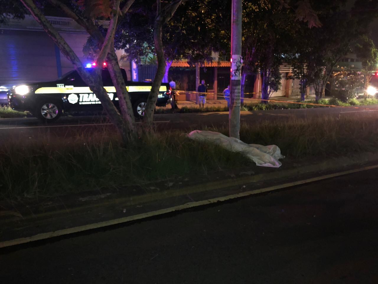 La moto quedó en media calle, en el sentido San José - Zapote, luego de que esta se estrellara contra una cuneta divisoria de esa carretera, mientras que el cuerpo quedó en el otro sentido de la vía, tras pegar contra un poste.