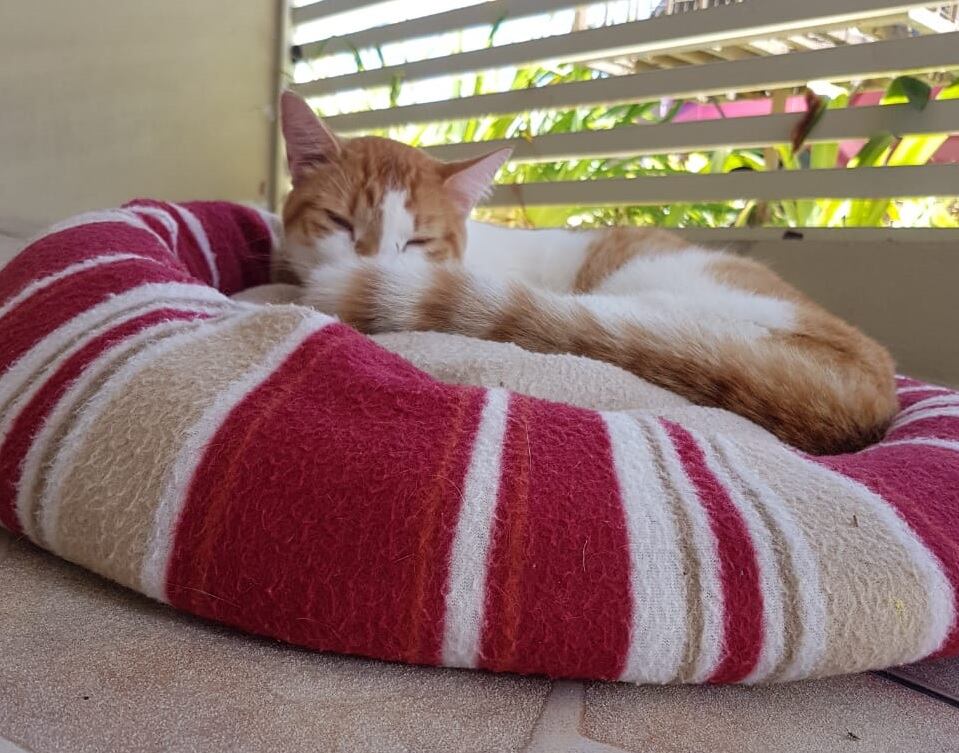 “Ya lo llevamos al veterinario y le pusieron vitaminas, una tratamiento contra las pulgas y gotas para desinflamarle un oído. Está supercariñoso y muy dormilón, solo se levanta para comer y se vuelve a acostar”.