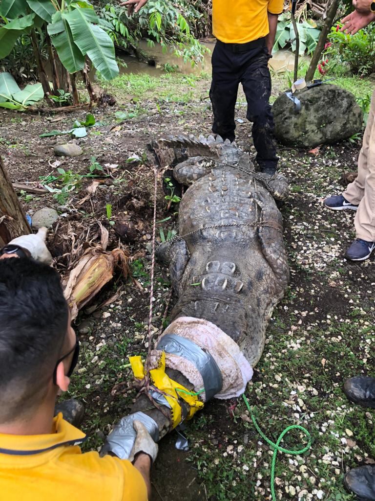 Los bomberos de Parrita con frecuencia capturan cocodrilos grandotes.