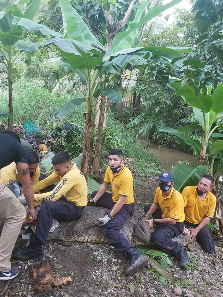 “Era un cocodrilo enorme, pesaba cerca de 450 kilos, según nos cuentan los vecinos, el cocodrilo ya tenía varios días de andar por el sitio, pero lo veían y al rato ya no estaba. Lo que ocurre es que muy cerca de las viviendas hay un canal de riego donde es común ver cocos de un metro, lo que nosotros llamamos cuajipales (caimanes)”, dijo el jefe.