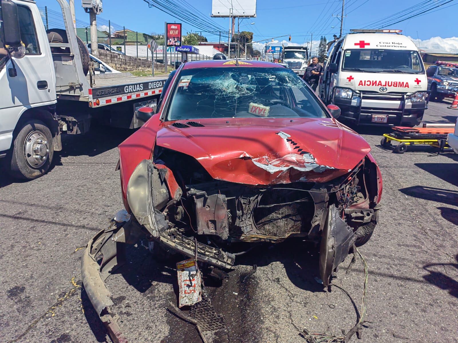 La Cruz Roja atendió la emergencia a las 11:57 a.m. frente al centro comercial Heredia 2000. El choque fue entre un camión y tres carros.