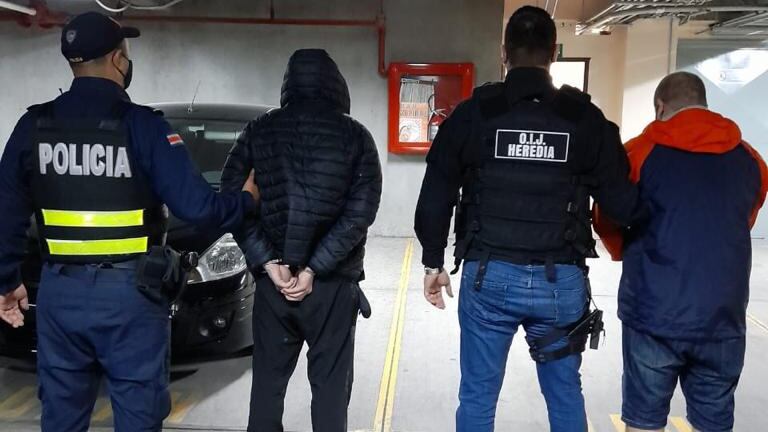 Dos hombres de apellidos Mejía Zamora, de 22 años, y Moya Lizano, de 28, fueron detenidos como sospechosos de tachar un carro en Santo Domingo de Heredia, a las 9 p. m. del viernes.