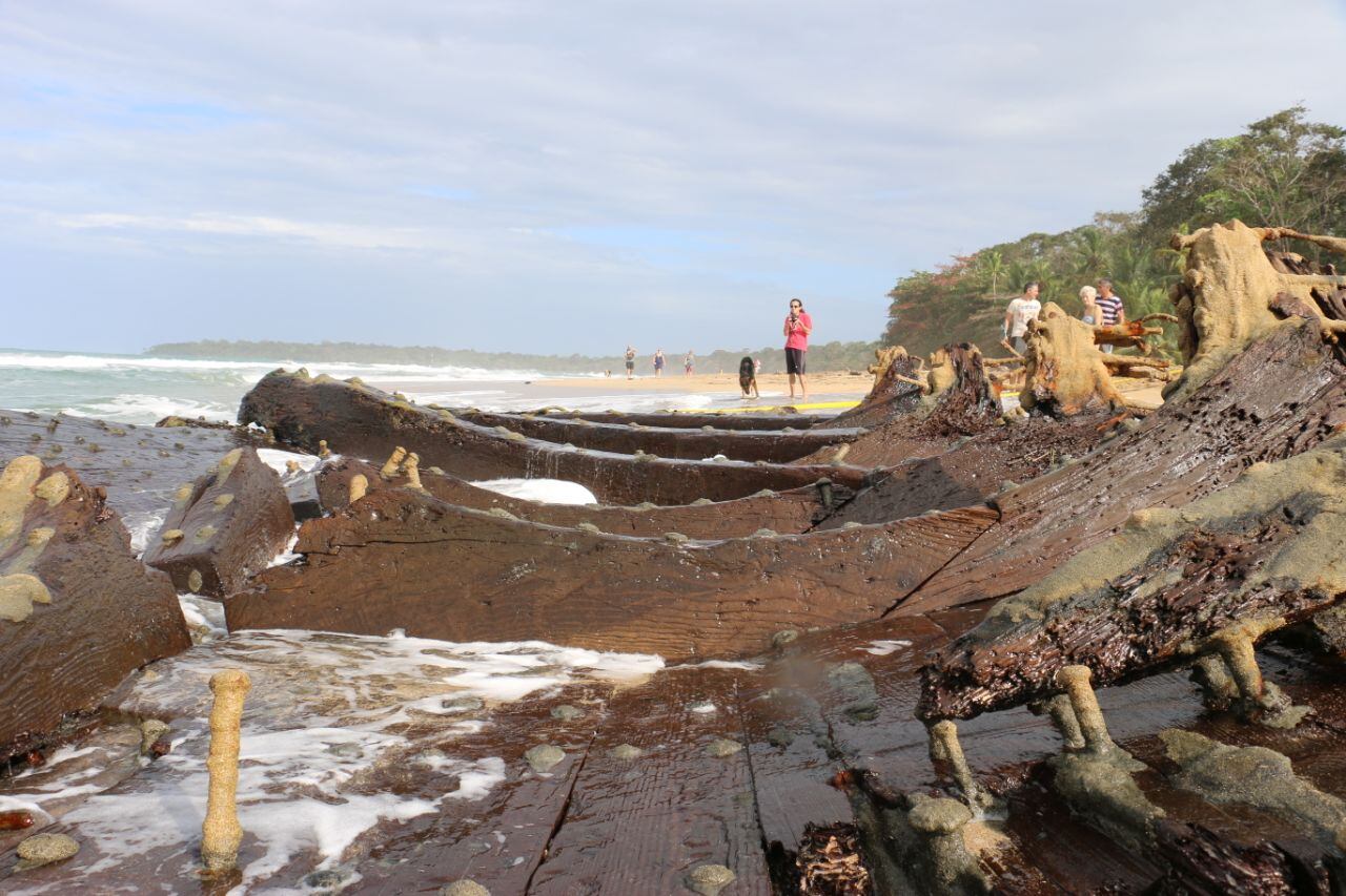 El mar sacó a playa Grande, en Talamanca, parte de un barco que se habría hundido hace más de 50 años.