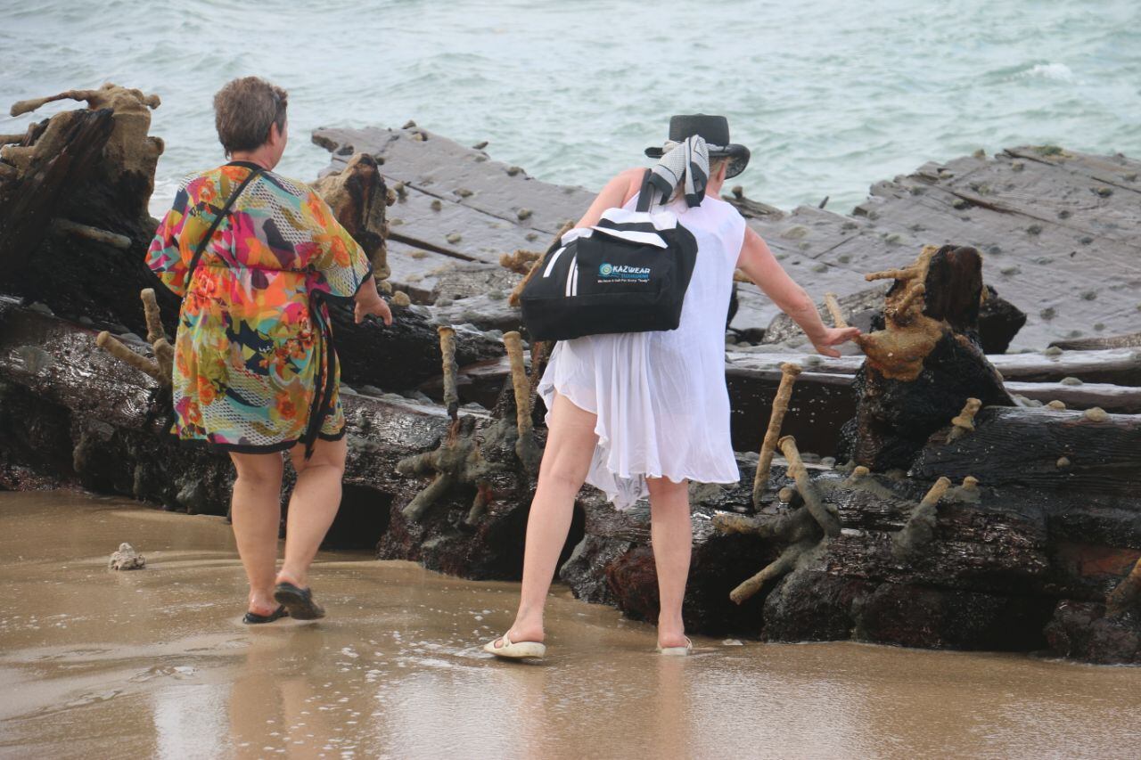 Este domingo llegaron a las playas decenas de personas a ver los restos, algunos lo tocaron, otros se tomaron fotos y muchos vacilaron con que si ya salió parte del barco ahorita sale el tesoro.