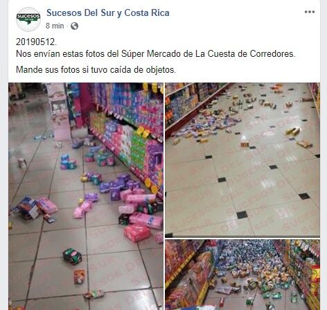 Sigifredo Pérez, jefe de operaciones de la Comisión Nacional de Emergencias (CNE), dijo que luego del temblor oficiales del Ministerio de Seguridad hicieron un barrido por la zona sur y no encontraron daños significativos, solo la caída de algunos objetos, principalmente en supermercados.