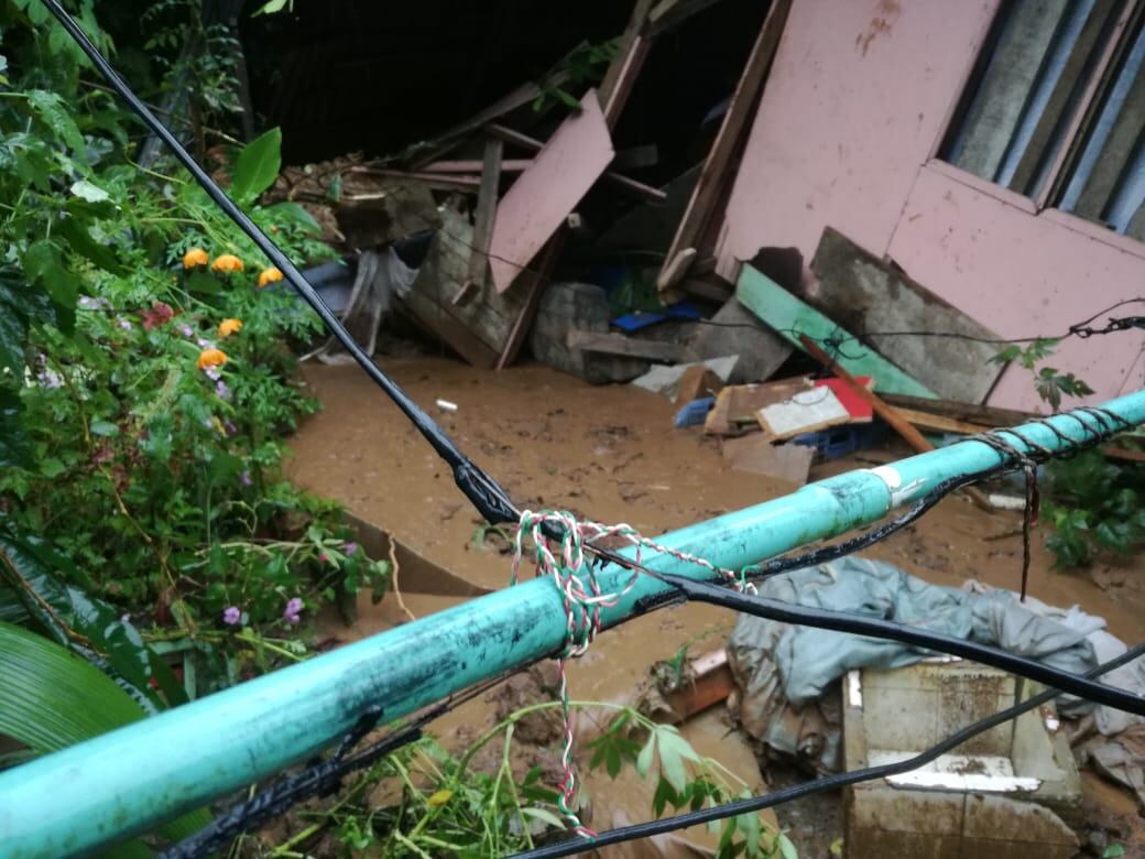 Un terraplén cayó sobre dos viviendas producto de las fuertes lluvias que azotaron San Carlos este sábado 27 de junio.