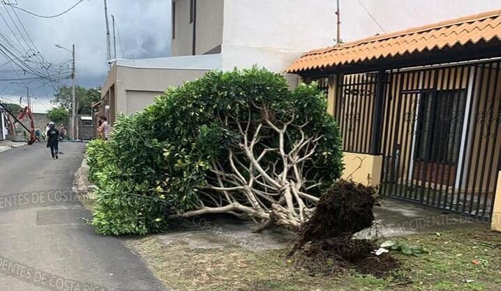 El suceso se dio este lunes 15 de junio a las 12:12 p.m. en Santo Domingo de Heredia. Los lugareños vieron que el cielo se puso oscuro y luego escucharon un gran estruendo, al salir vieron que había techos y portones, incluso un árbol en el suelo.