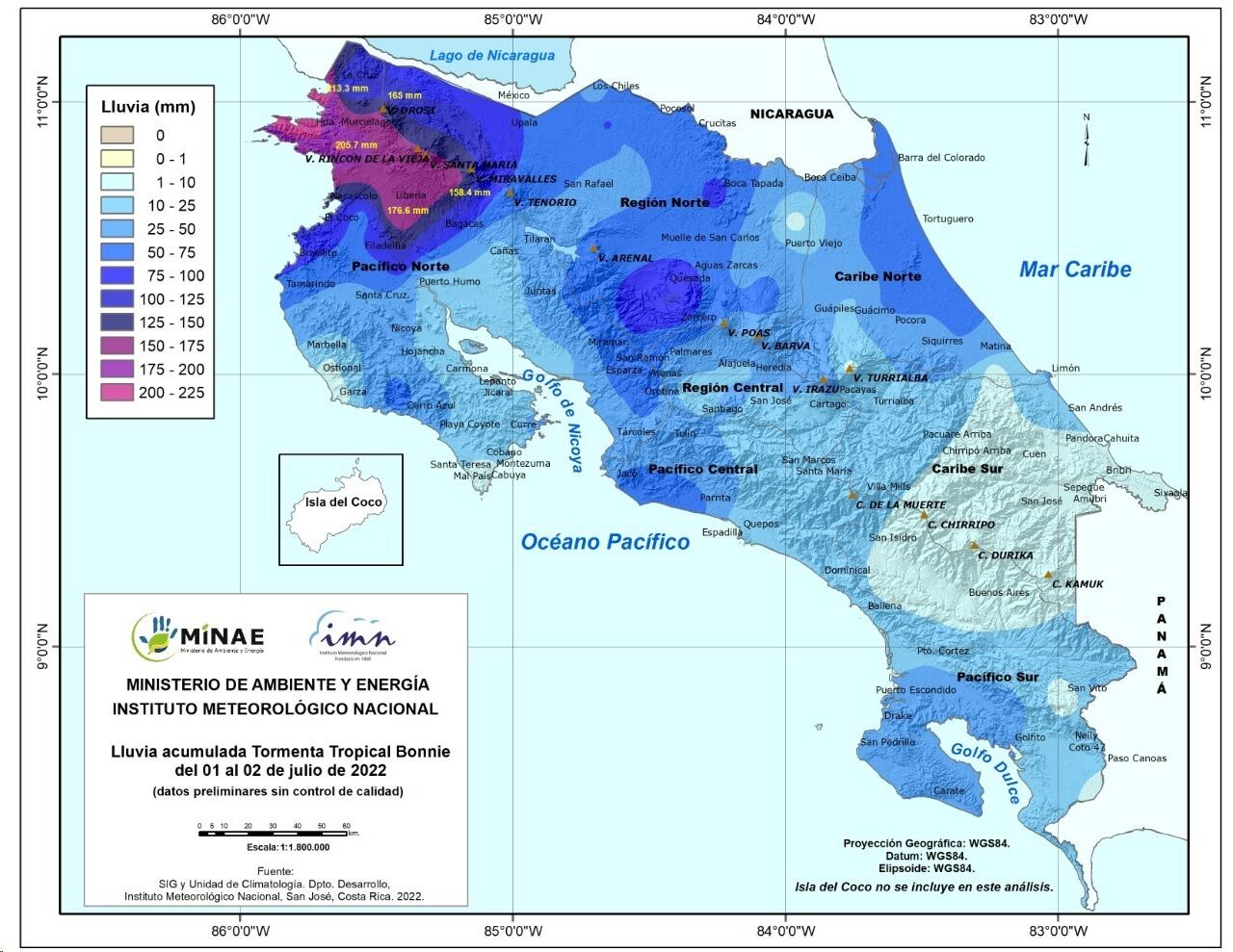 En alerta naranja permanece la zona norte, el Caribe norte y el Pacífico norte (exceptuando La Cruz y Liberia).