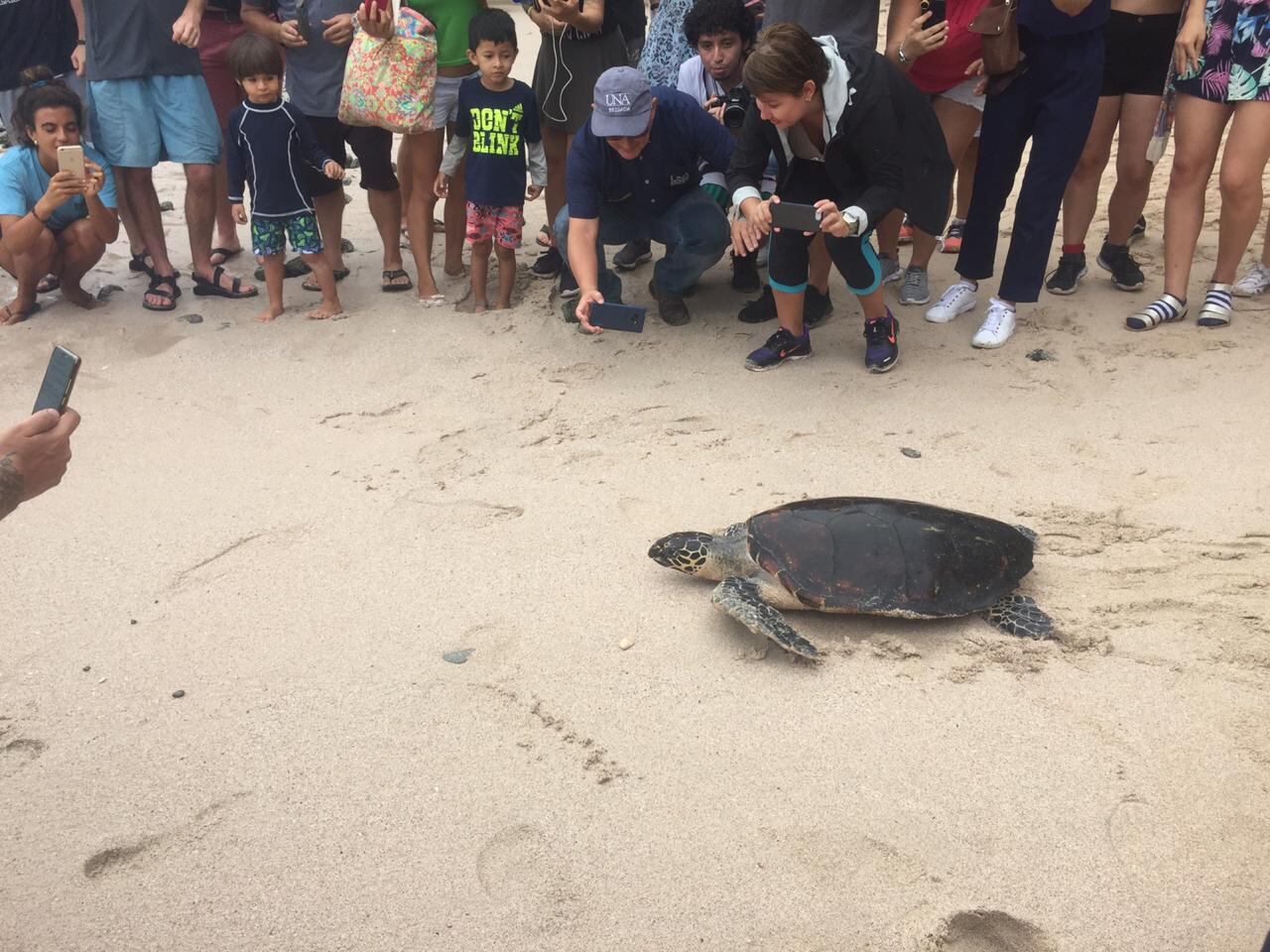 Los miembros del Centro de Rescate de Especies Marinas Amenazadas (CREMA) están felices porque lograron que “Hook” (anzuelo), una tortuga a la que se le pegaron dos anzuelos de pesca en el pescuezo, se recuperara y regresara a su hábitat.