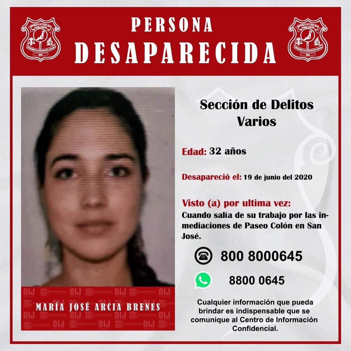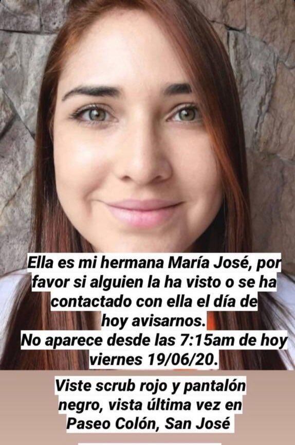 Se trata de María José Arcía Brenes, de 31 años, quien es vecina de Heredia. Sus familiares dicen que ella vestía una especie de gabacha roja y un pantalón negro.