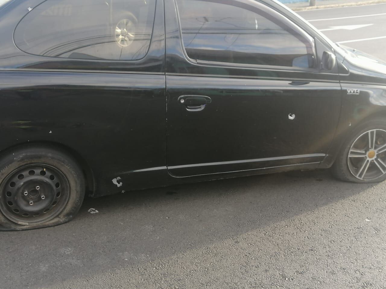 Luego de levantarse al motociclista, el sujeto aceleró hacia el frente y casi atropella a dos oficiales, por lo que estos decidieron disparar a las llantas del vehículo, forma en la que lograron que se detuviera.